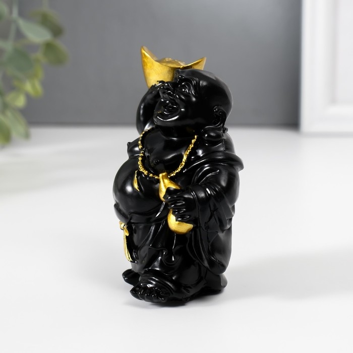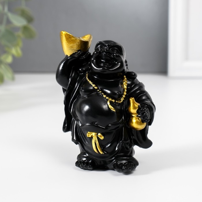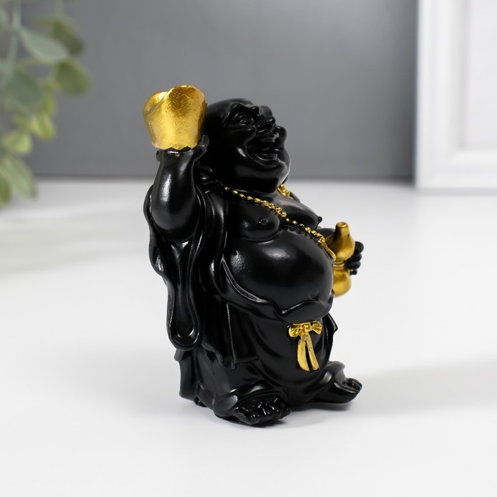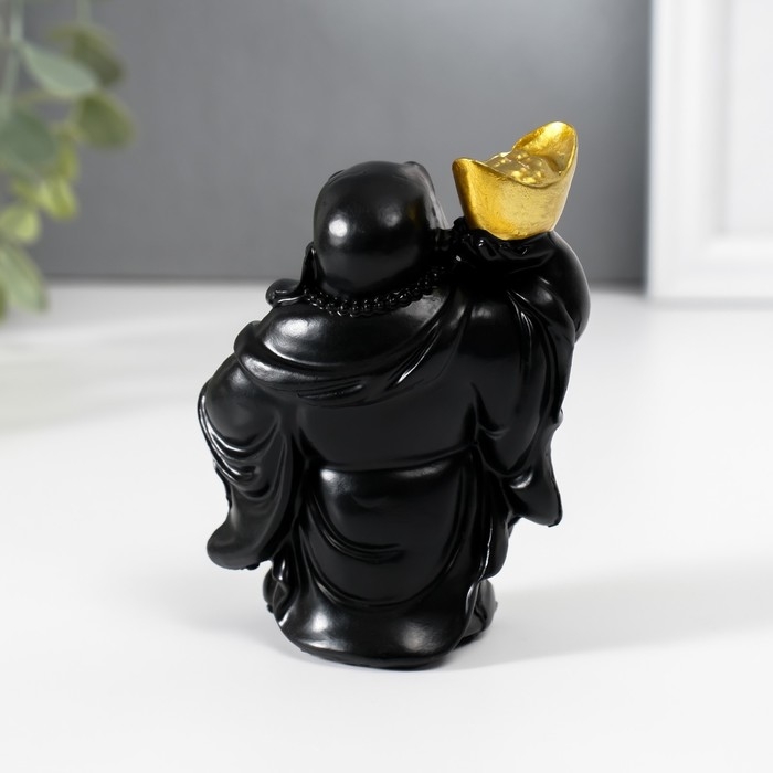 Нэцкэ полистоун "Хотей с золотым слитком и тыквой горлянкой" чёрный 4,5х6,7х9 см