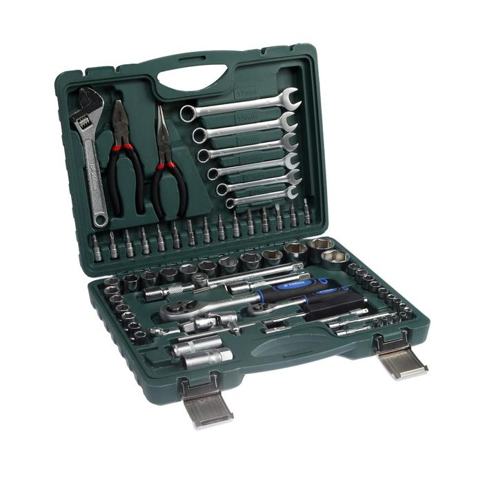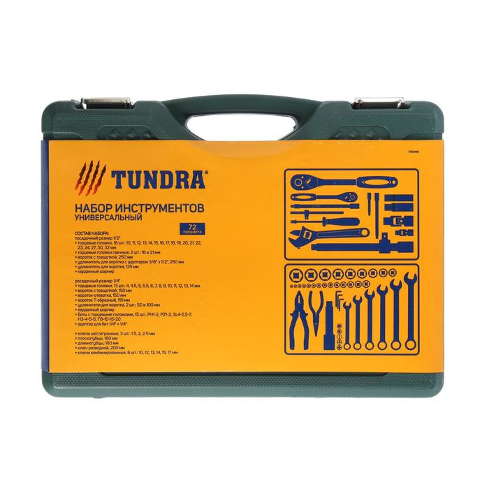 Набор инструментов в кейсе ТУНДРА, автомобильный, CrV, 1/2" и 1/4", 72 предмета