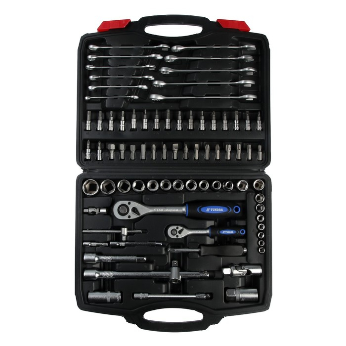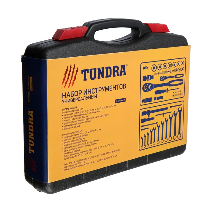 Набор инструментов в кейсе ТУНДРА, автомобильный, CrV, 1/2" и 1/4", 78 предметов