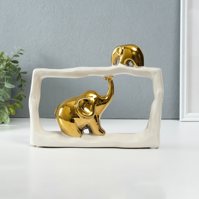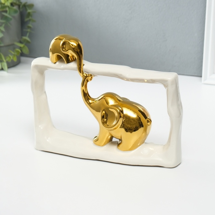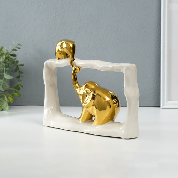 Сувенир керамика "Слон со слонёнком - касание. Прямоугольник" белый с золотом 6х23х16,5 см 1032364