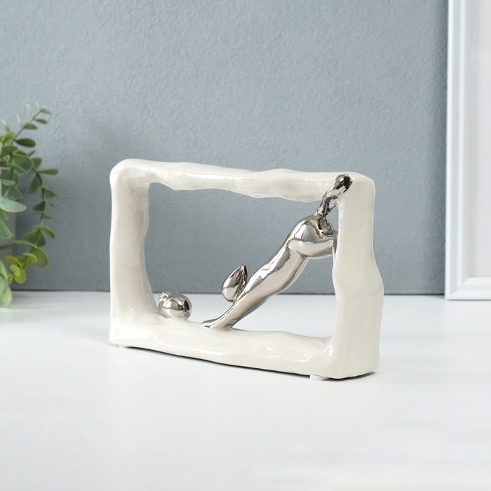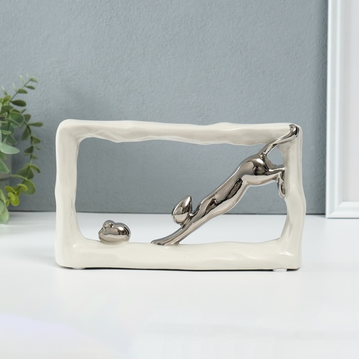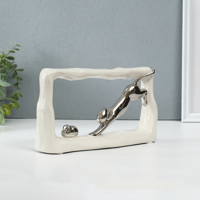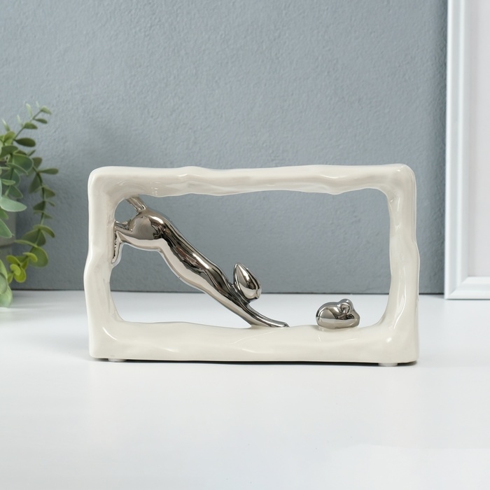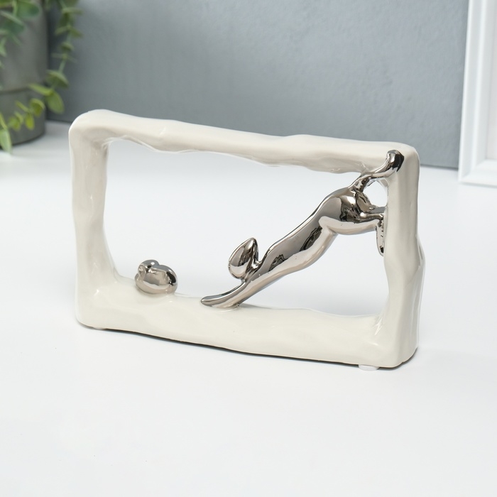 Сувенир керамика "Кошки-мышки - погоня. Прямоугольник" белый с серебром 5,5х21,5х13 см