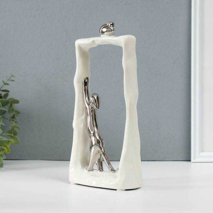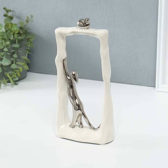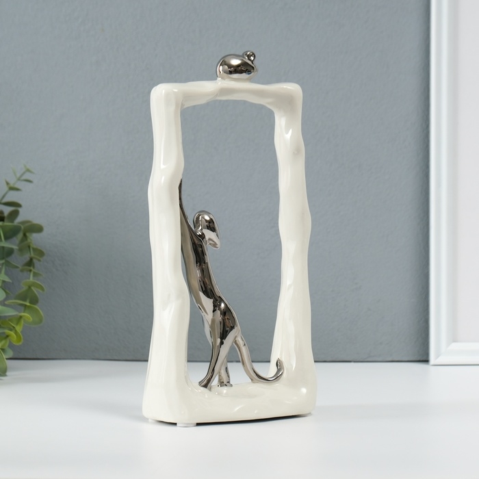 Сувенир керамика "Кошки-мышки - охота. Прямоугольник" белый с серебром 6,2х12х24,5 см