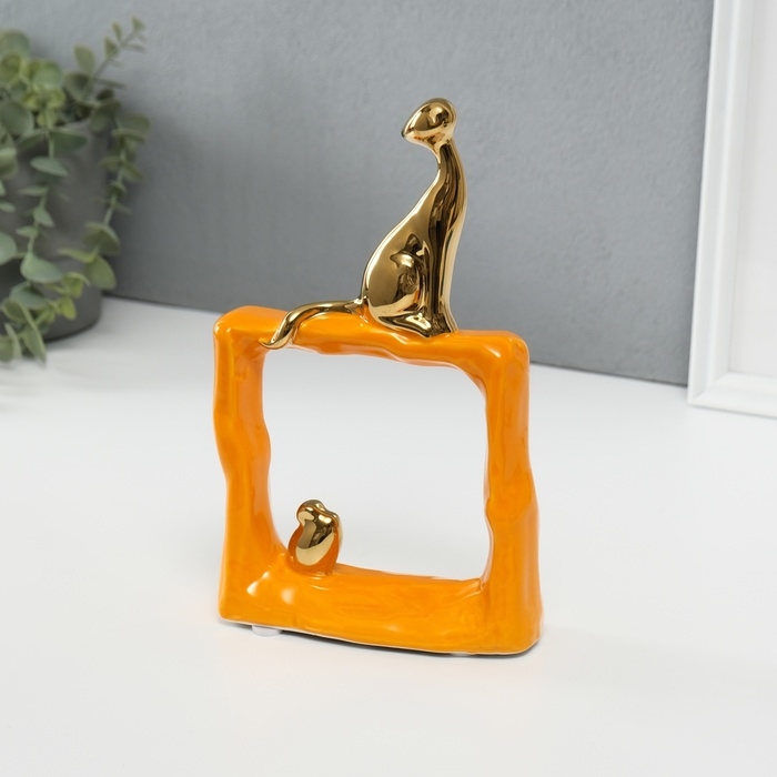Сувенир керамика "Кошки-мышки. Квадрат" оранжевый с золотом 5,2х13,5х23 см