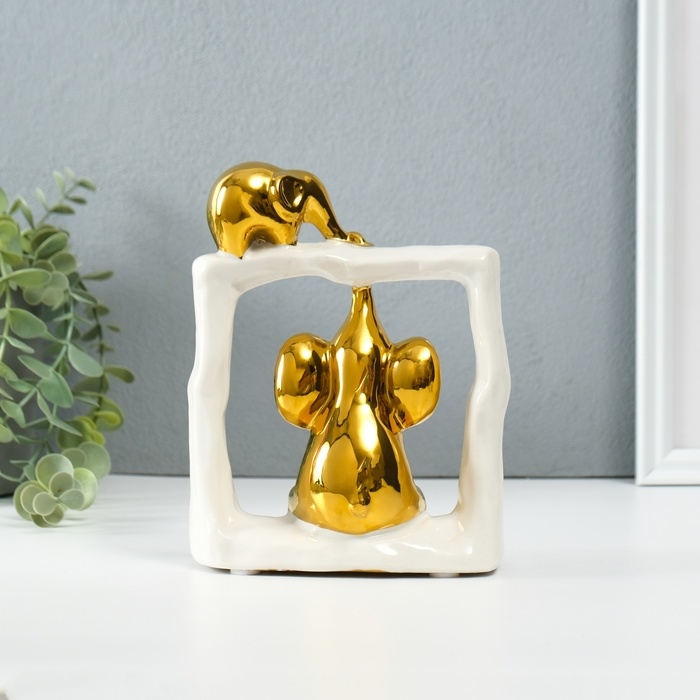 Сувенир керамика "Слонята - поддержка. Квадрат" белый с золотом 6х13,5х17,5 см
