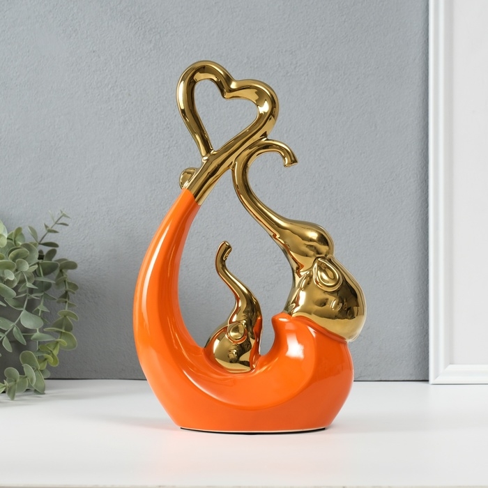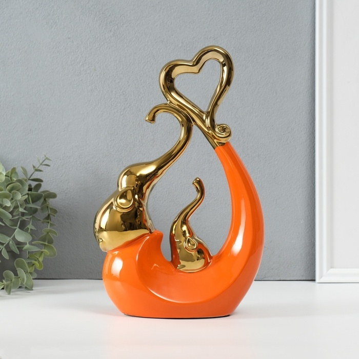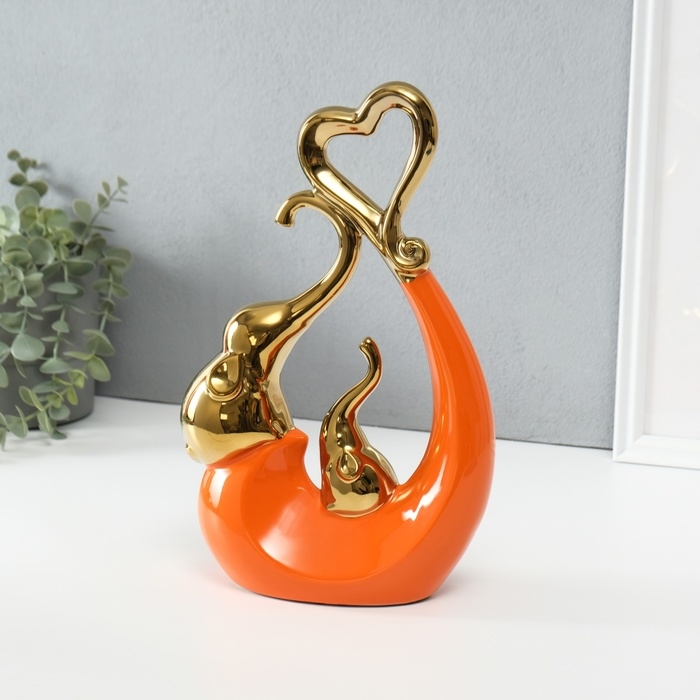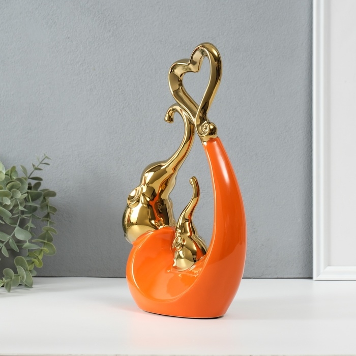 Сувенир керамика "Слоники с сердцем. Абстракция" оранжевый с золотом 7х18,5х25,5 см