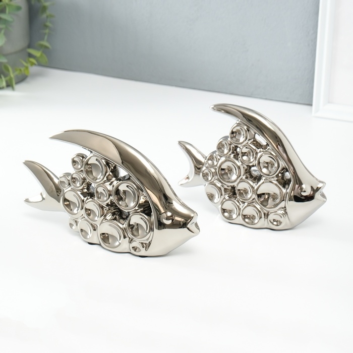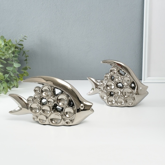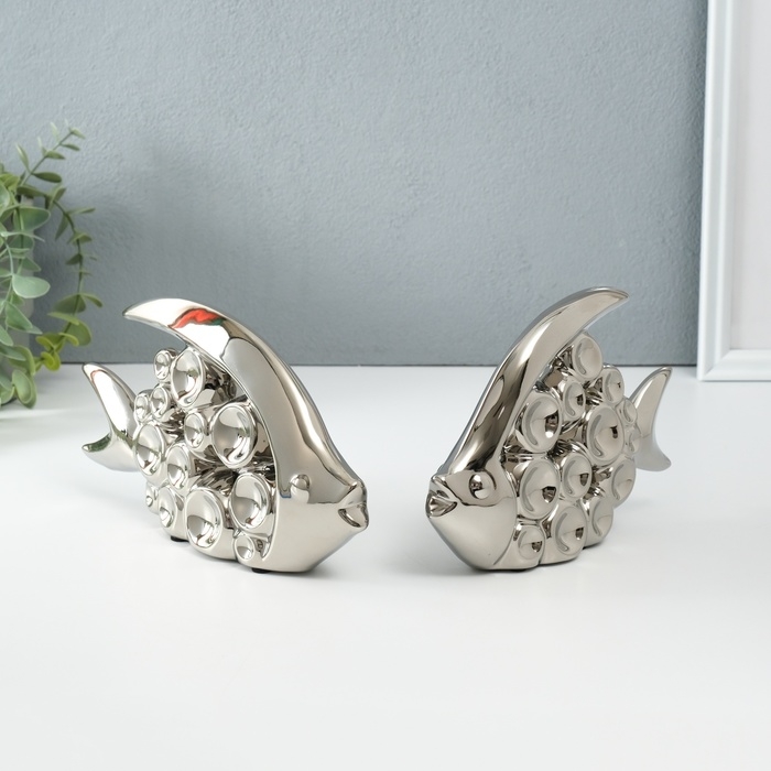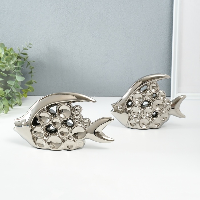 Сувенир керамика "Две рыбки - пузырьки" серебро набор 2 шт 4,8х22х12 4,8х17,5х13 см