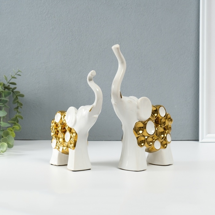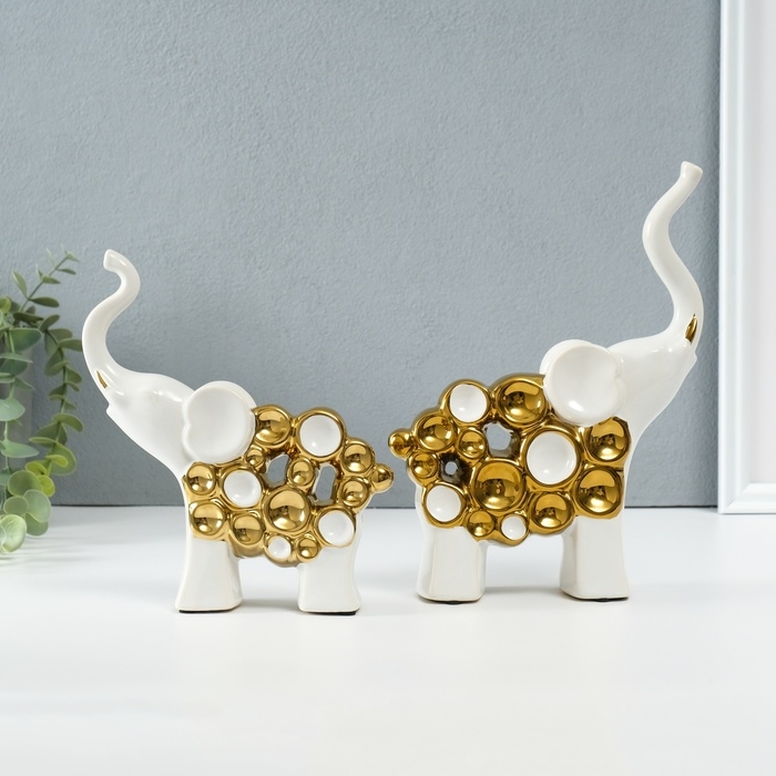Сувенир керамика "Два слона - пузырьки" белый с золотом набор 2 шт 4х17х18 5х16,5х22 см