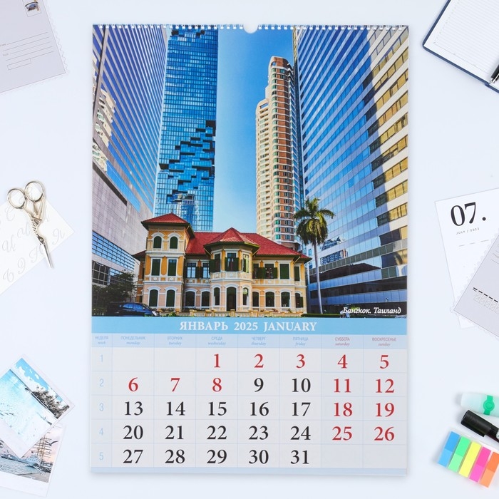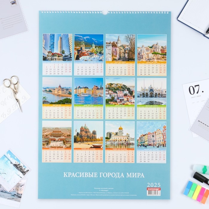 Календарь перекидной на ригеле А2 "Красивые города" 2025, 42 х 60 см