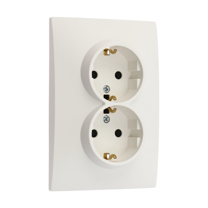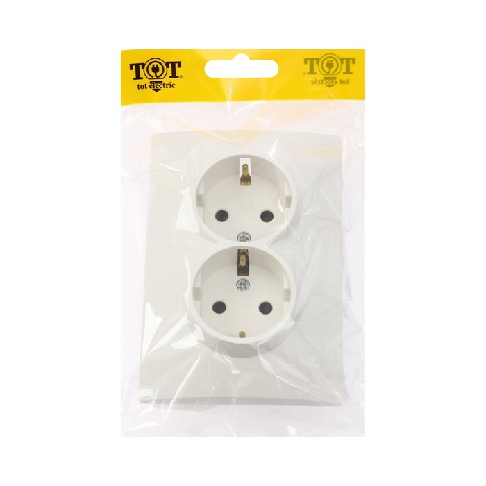 Розетка двухместная TOT Elegant, 16 А, скрытая, с з/к, белая