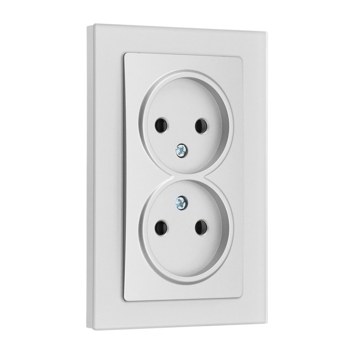 Розетка двухместная TOT Matte Glass, 10 А, скрытая, без з/к, стекло, серебристая