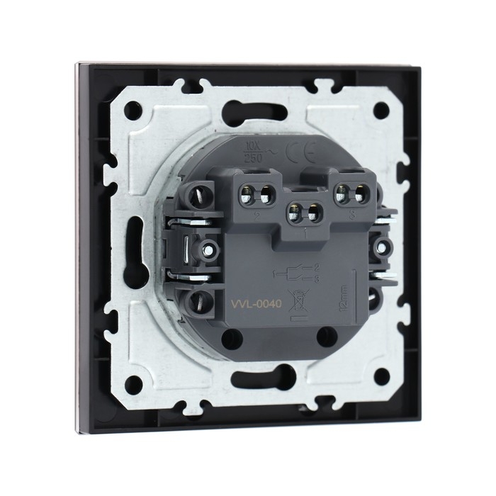 Выключатель TOT Glossy Glass, 10 А, 2 клавиши, скрытый, стекло, черный