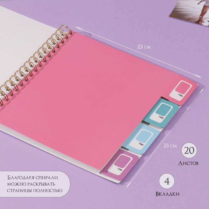 Фотоальбом на спирали 20 листов "Палитра" объёмный элемент + 4 вкладки 24х24 см