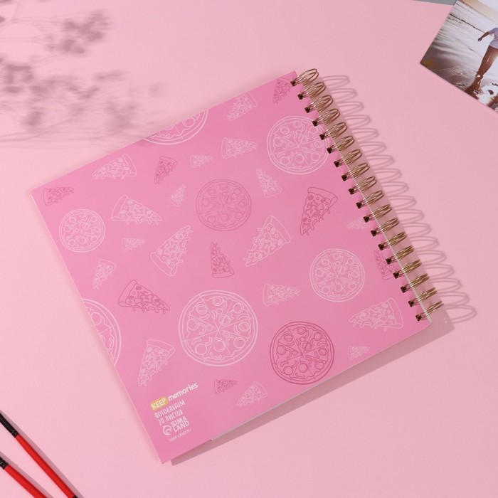 Фотоальбом на спирали 20 листов "Котики с пиццей" объёмный элемент + 4 вкладки 24х24 см