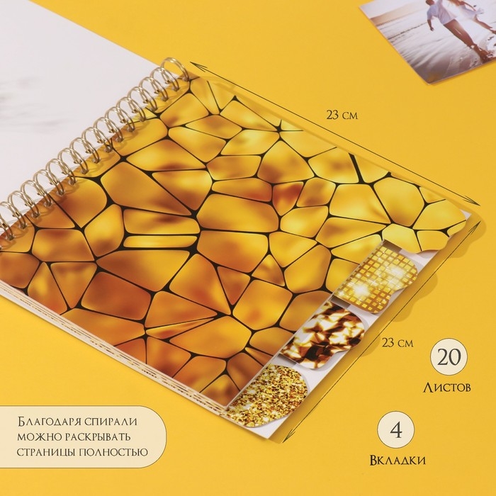 Фотоальбом на спирали 20 листов "Моё zoloto" объёмный элемент + 4 вкладки 24х24 см