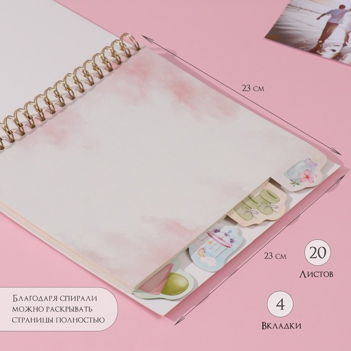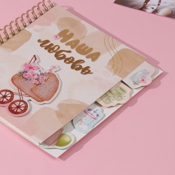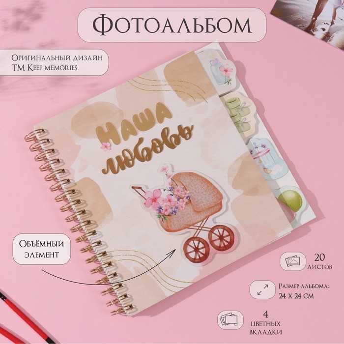 Фотоальбом на спирали 20 листов "Наша любовь" объёмный элемент + 4 вкладки 24х24 см
