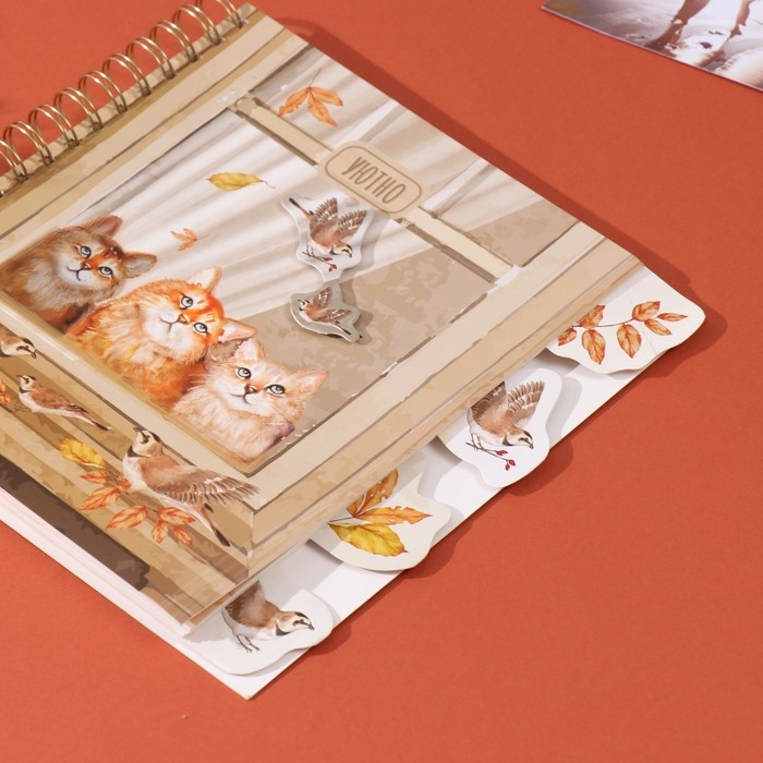 Фотоальбом на спирали 20 листов "Котики в окне" объёмный элемент + 4 вкладки 24х24 см