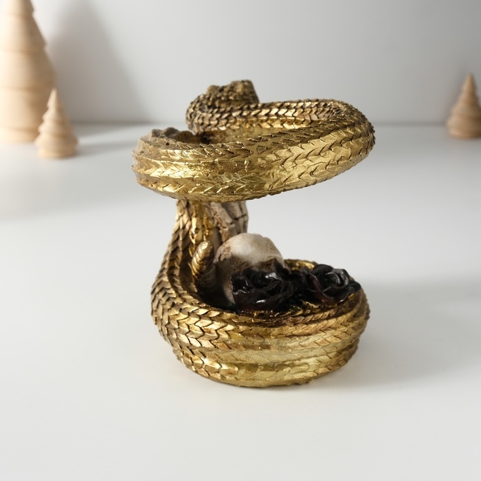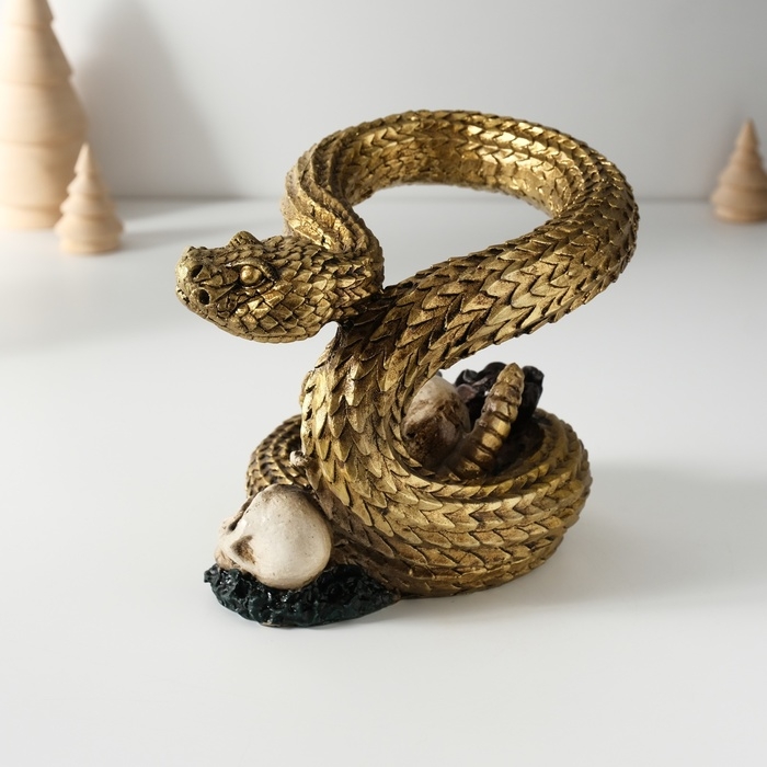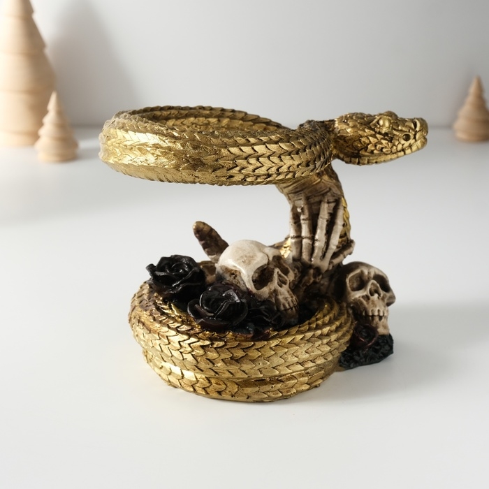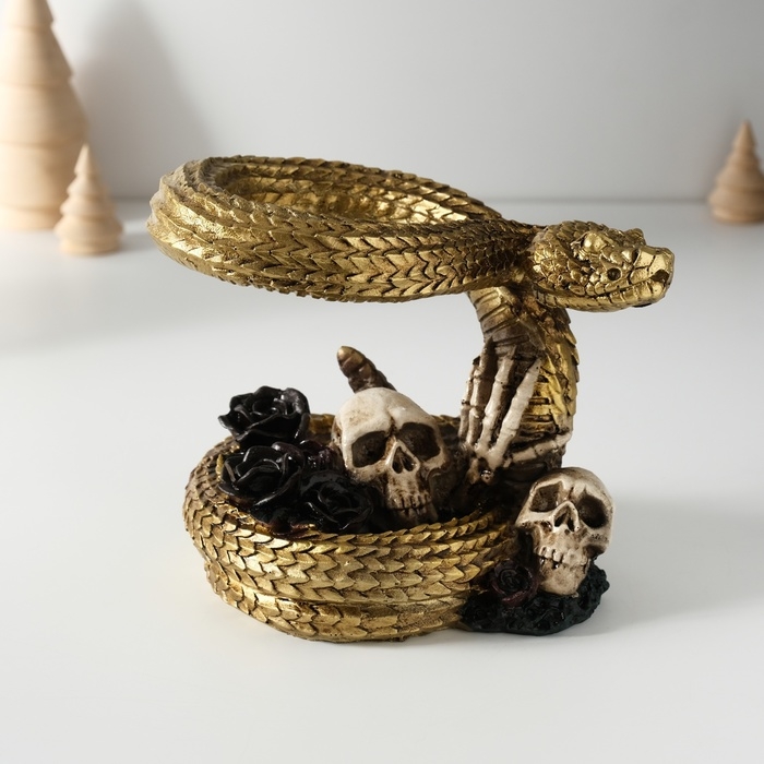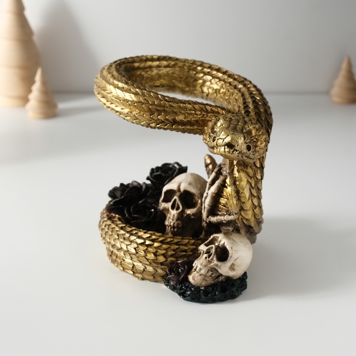Сувенир полистоун "Змея с черепами и чёрными розами" 11,5х16х13 см