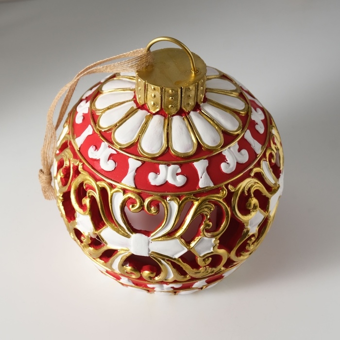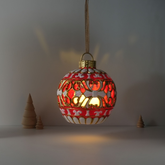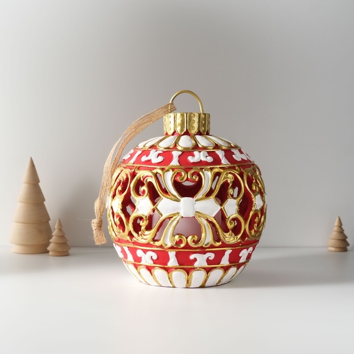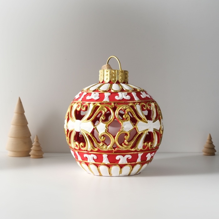 Сувенир полистоун свет "Новогодний шар красный с белыми узорами" 16,5х16,5х20 см