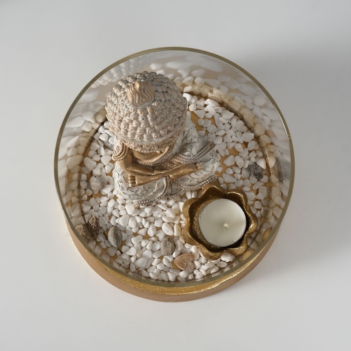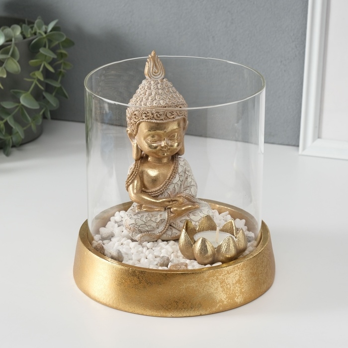Сувенир полистоун, стекло "Медитирующий Будда в саду камней" со свечой 18х18х18 см