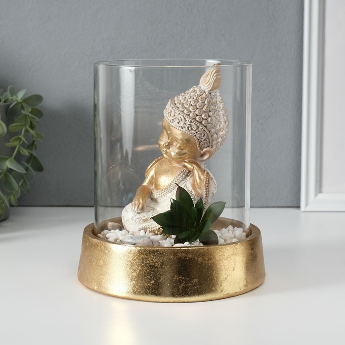 Сувенир полистоун, стекло "Маленький Будда в саду камней" 15,5х15,5х18 см