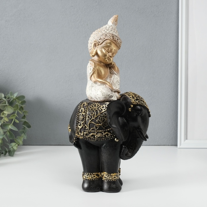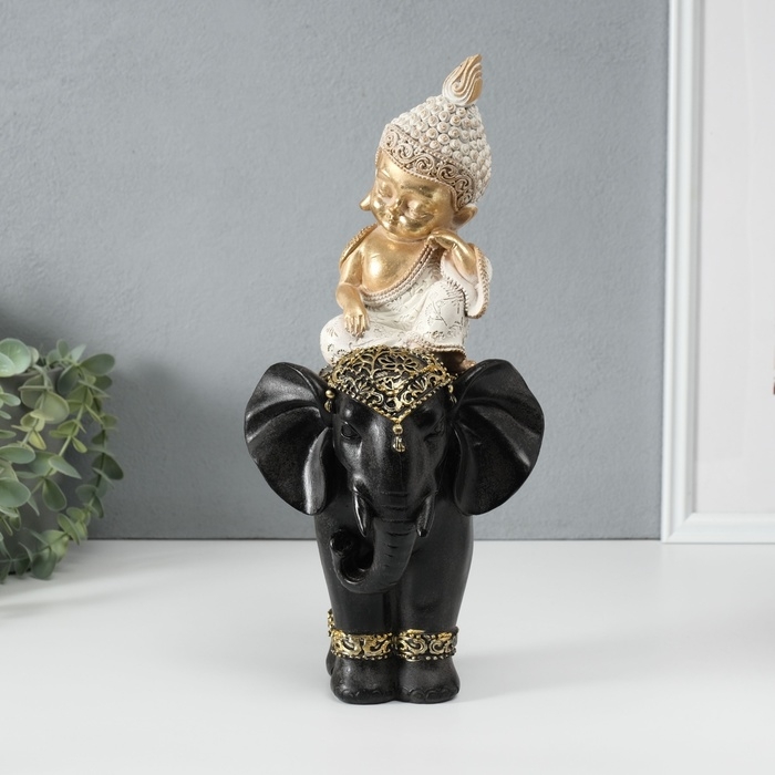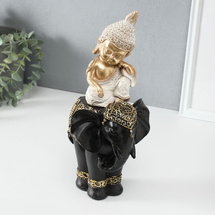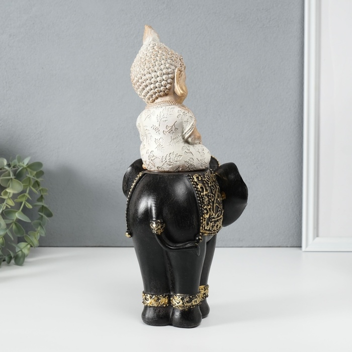 Сувенир полистоун "Маленький Будда на чёрном слоне" 14х14х30 см