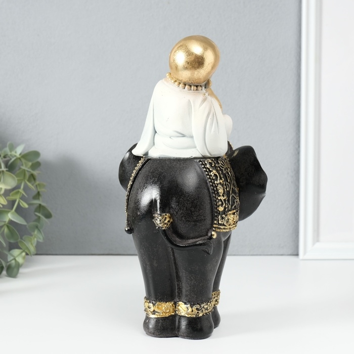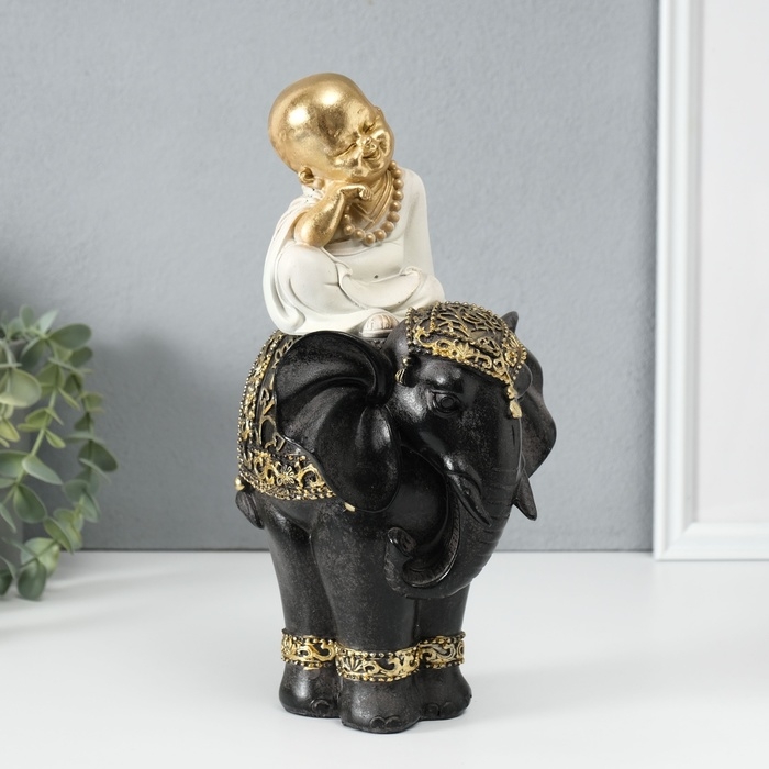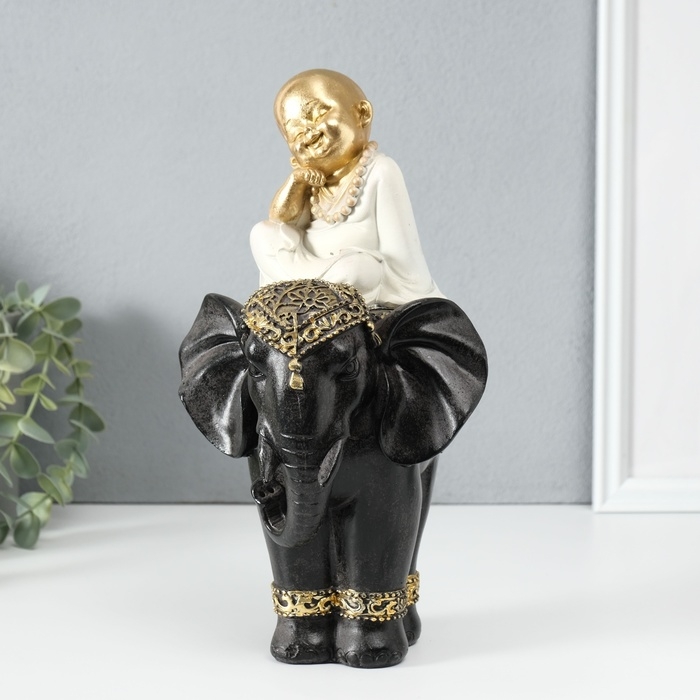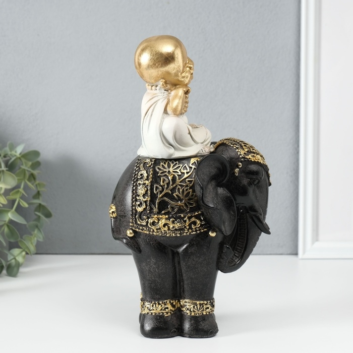 Сувенир полистоун "Маленький весёлый Будда на чёрном слоне" 14х14х26 см