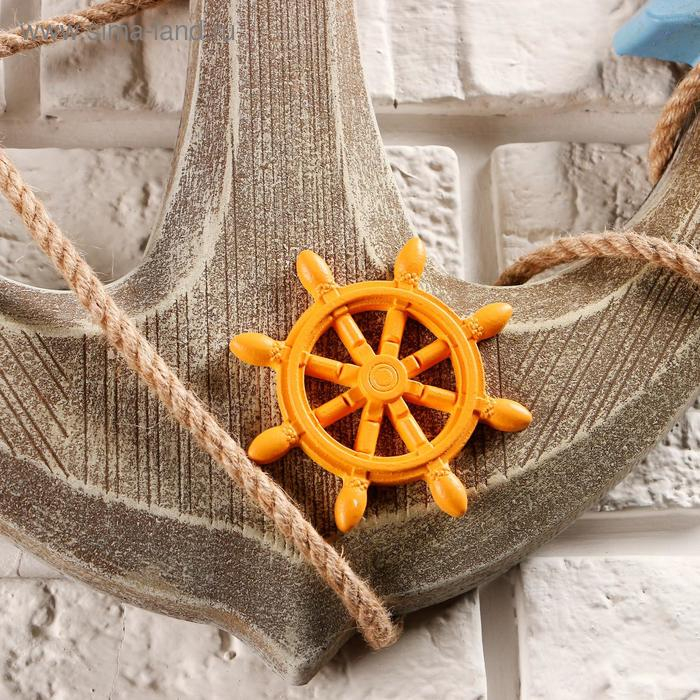 Якорь интерьерный с веревкой и штурвалом, 60*44см