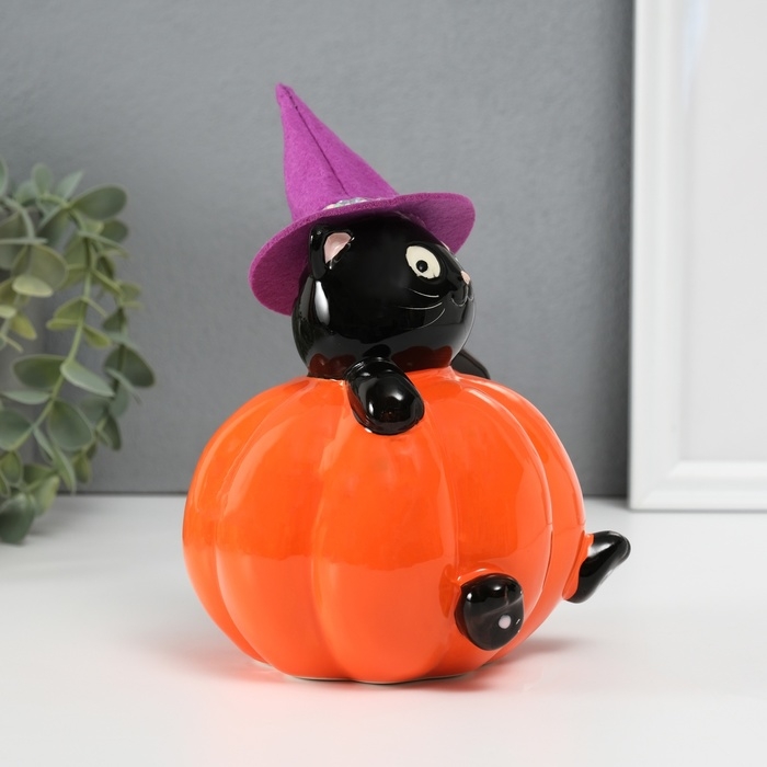 Копилка керамика "Котик в тыкве" 11,7х12х13,4 см