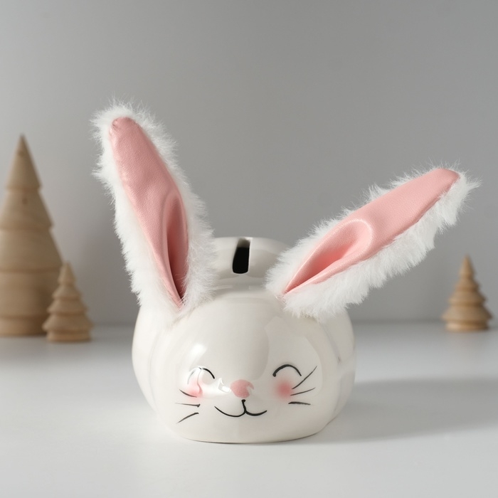 Копилка керамика "Румянный кролик с мягкими ушками" 8,8х13,2х7 см