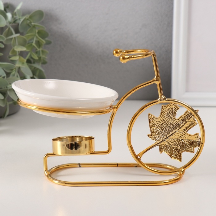 Аромалампа металл, керамика "Золотой велосипед с листом" 10х17,5х12 см