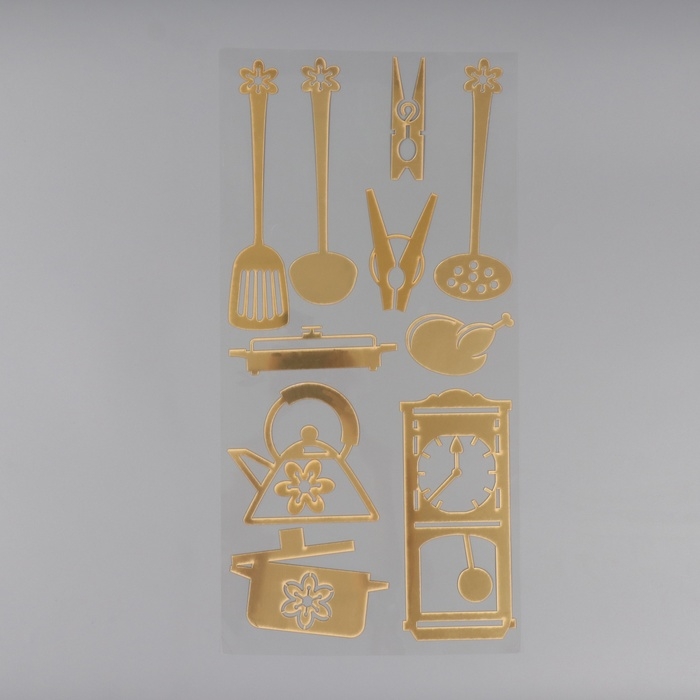 Наклейка пластик интерьерная "Кухонная утварь" серебро 70х30 см