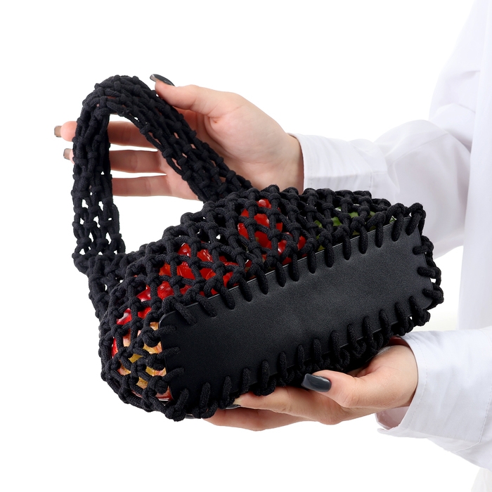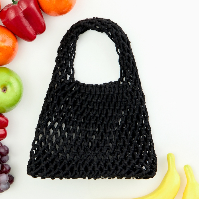 Авоська плетёная сумка сетка 34 х 34 см, ручка 12 см, клетка 1.5 см, чёрная