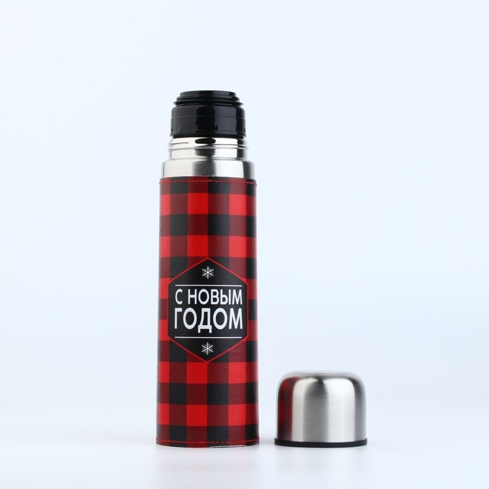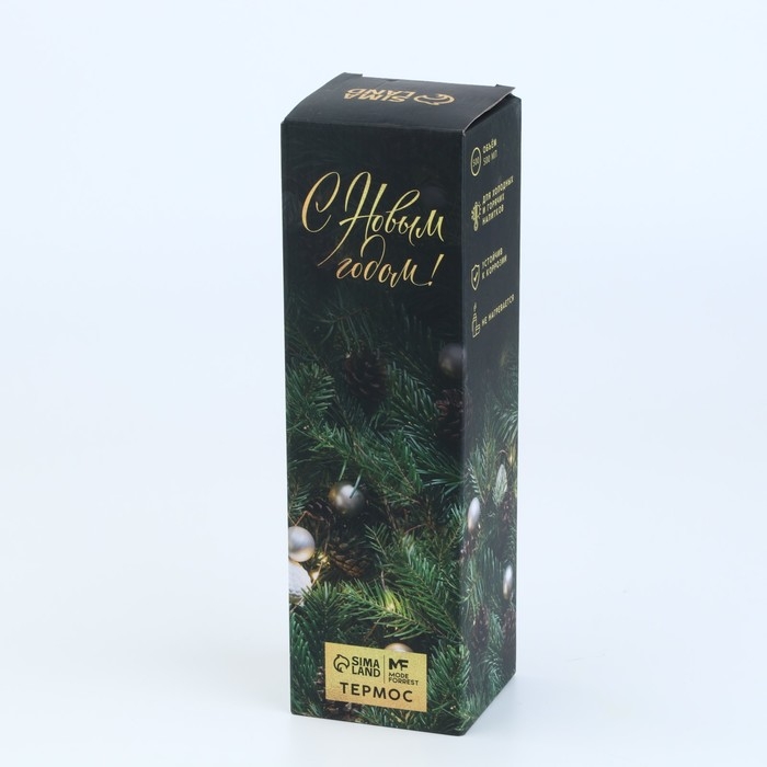 - Стильный дизайн: термос оформлен в современном стиле с новогодним настроением.