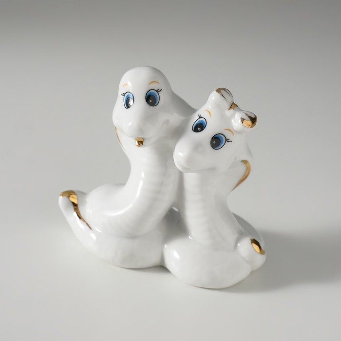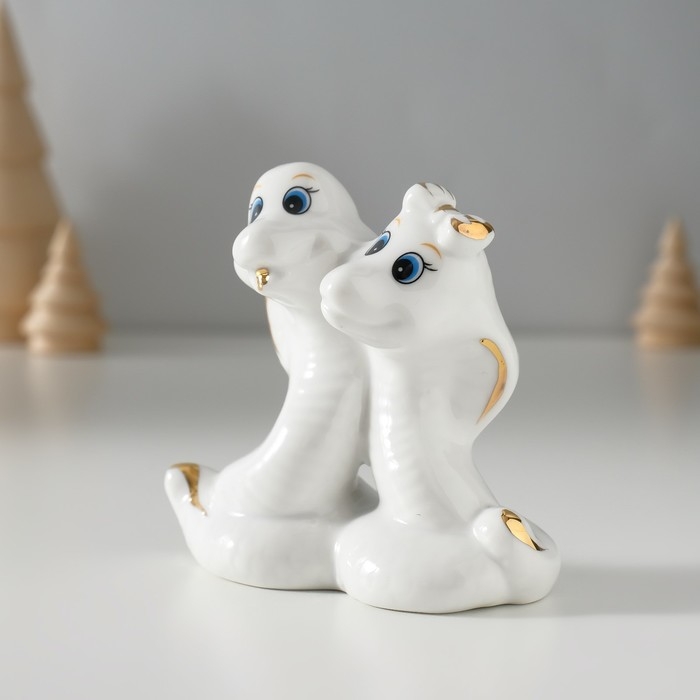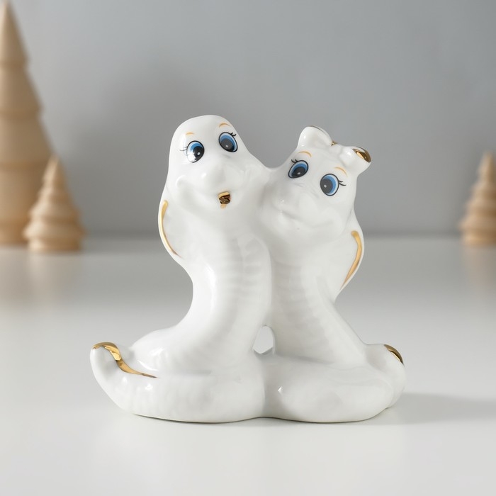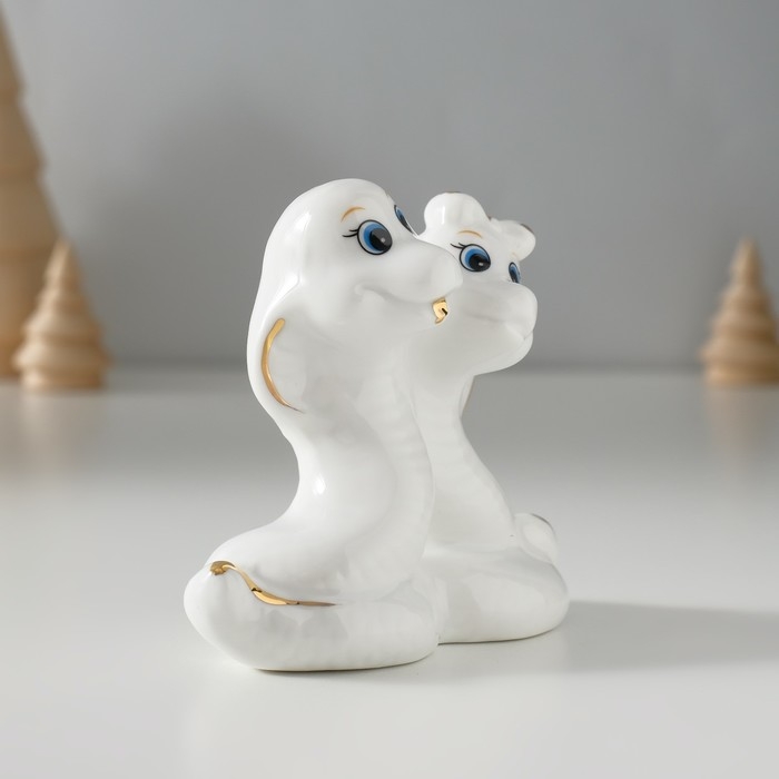 Сувенир керамика "Парочка кобр - любовь" белый с золотом 4,5х9х8 см