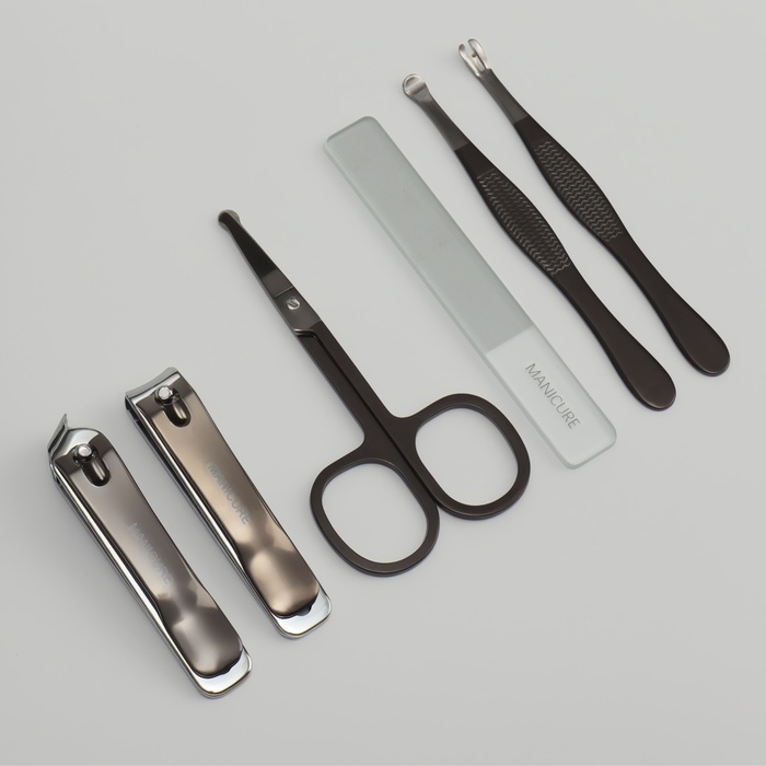 Набор маникюрный, 8 предметов, в футляре, цвет коричневый