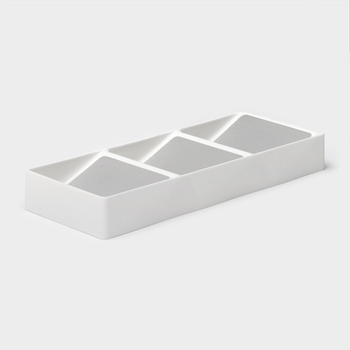Лоток для столовых приборов Griten, с силиконовой вставкой, 3 секции, 39×15×5 см, цвет белый