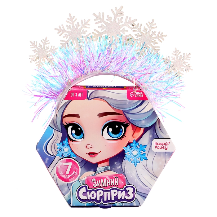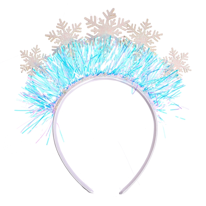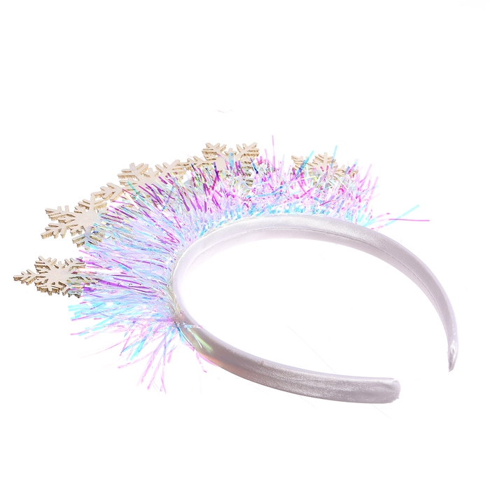 - Очаровательный ободок со снежинками и мишурой превратит любую прическу в праздничную.