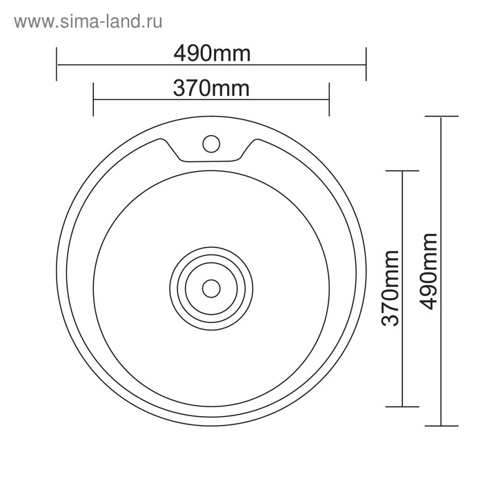 Мойка кухонная Accoona AB4949, врезная, круглая, толщина 0.6 мм, 490х165 мм, глянец