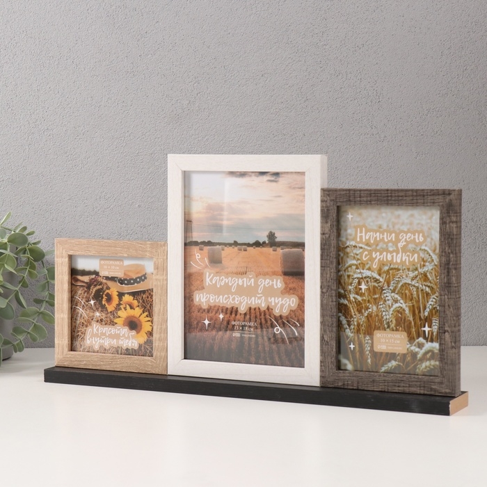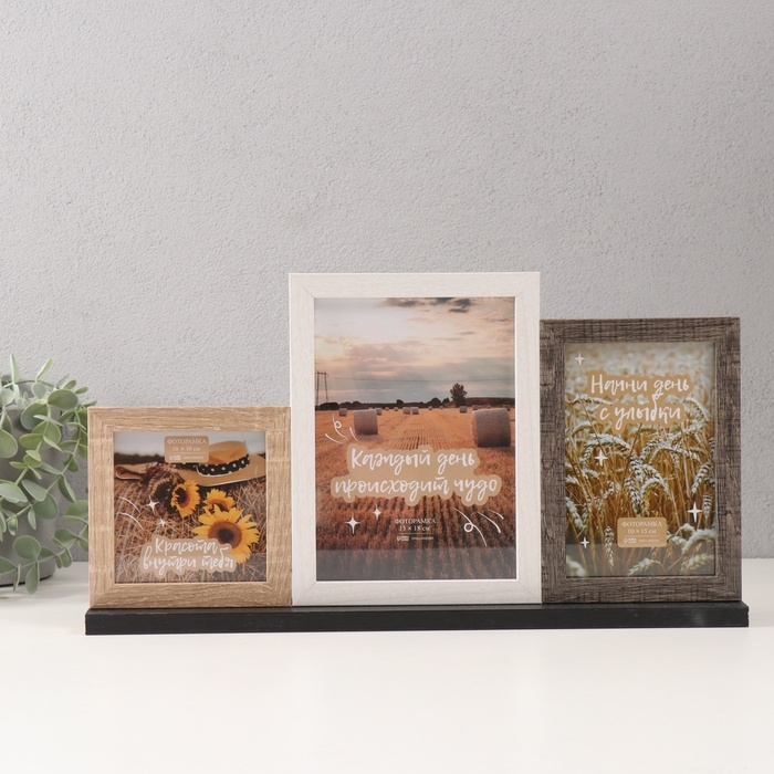 Фоторамка МДФ на 3 фото 10х10 10х15 13х18 см "Агата" трехцветная 5х40х21,5 см
