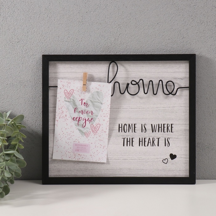 Фоторамка дерево, металл с прищепками 10х15 см "Дом" черная 28,5х24х1,3 см