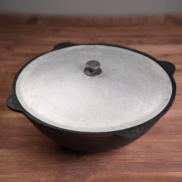 Казан чугунный, 12 л, плоское дно, алюминиевая крышка