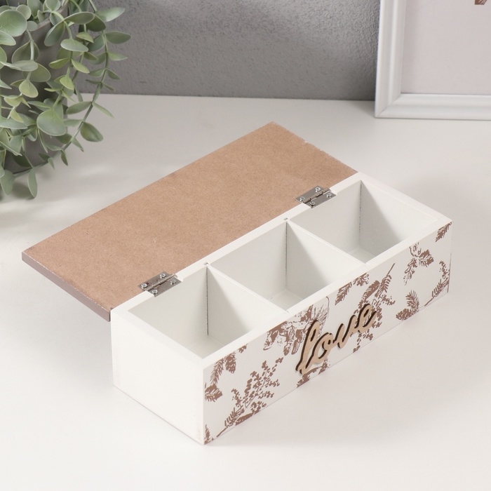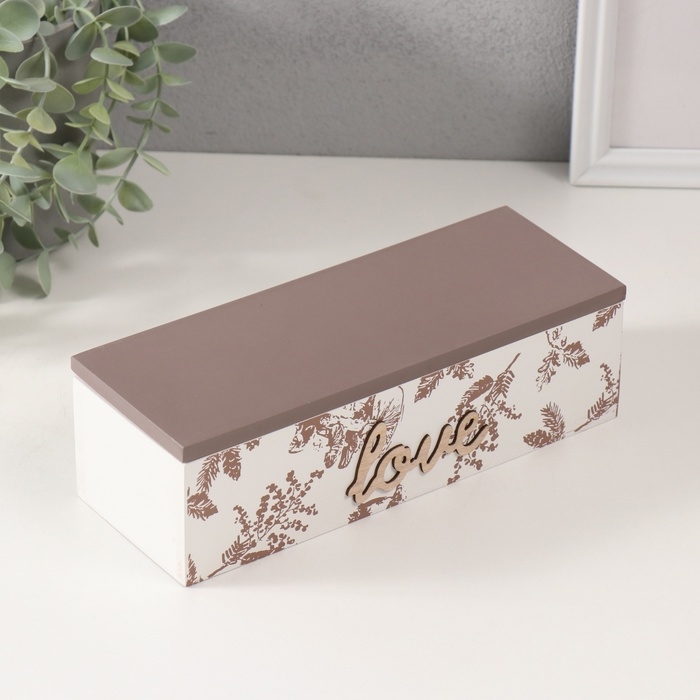 Шкатулка дерево с делениями "Грибы и растения. Love" 23,7х9,5х7,5 см