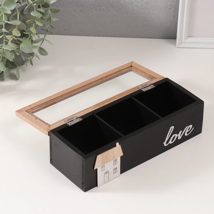 Шкатулка дерево с делениями "Домик" чёрная 23,7х9,5х7,5 см