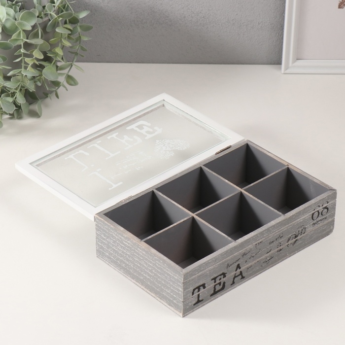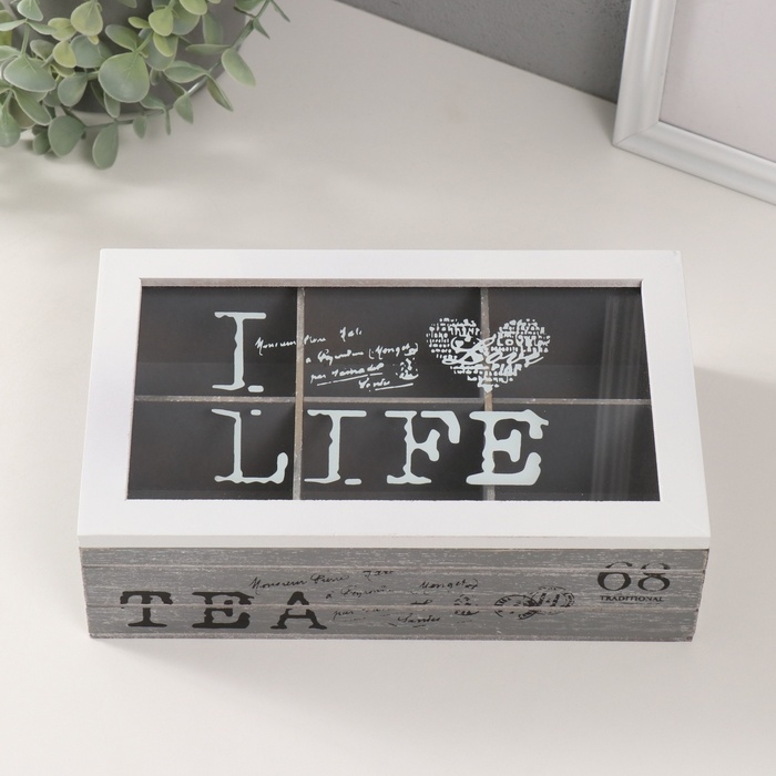 Шкатулка дерево 6 делений "Я люблю жизнь" серо-белая 15х24х7 см