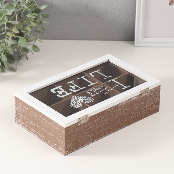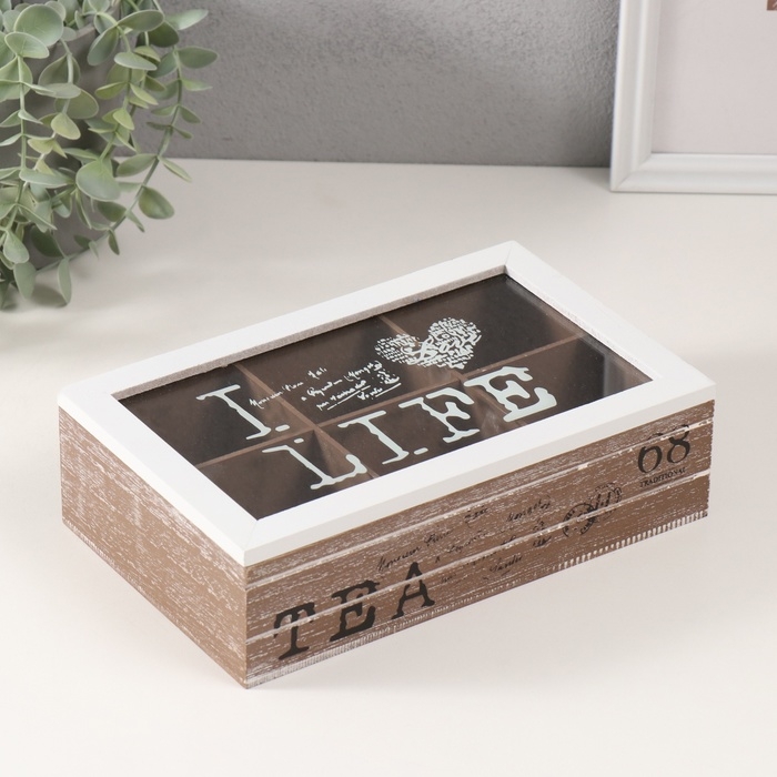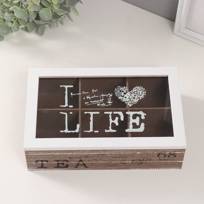 Шкатулка дерево 6 делений "Я люблю жизнь" коричнево-белая 15х24х7 см