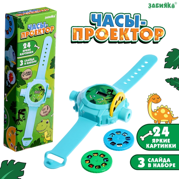 Часы-проектор «Динозавры», световые эффекты, 24 картинки, цвет голубой