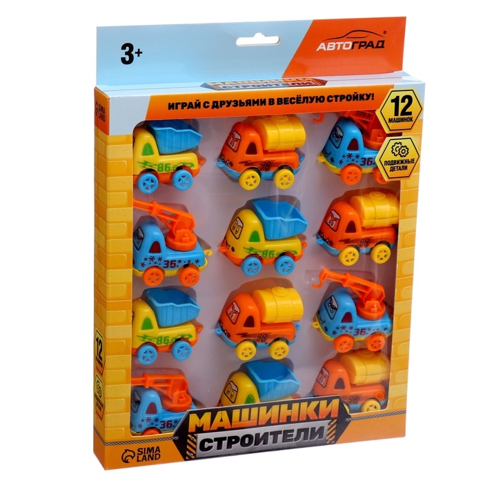 АВТОГРАД Набор "Машинки строители", 12 шт.