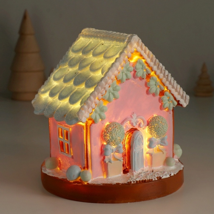 Сувенир полистоун свет "Пряничный домик с зеленью" зефирный 12,5х12,5х12,5 см