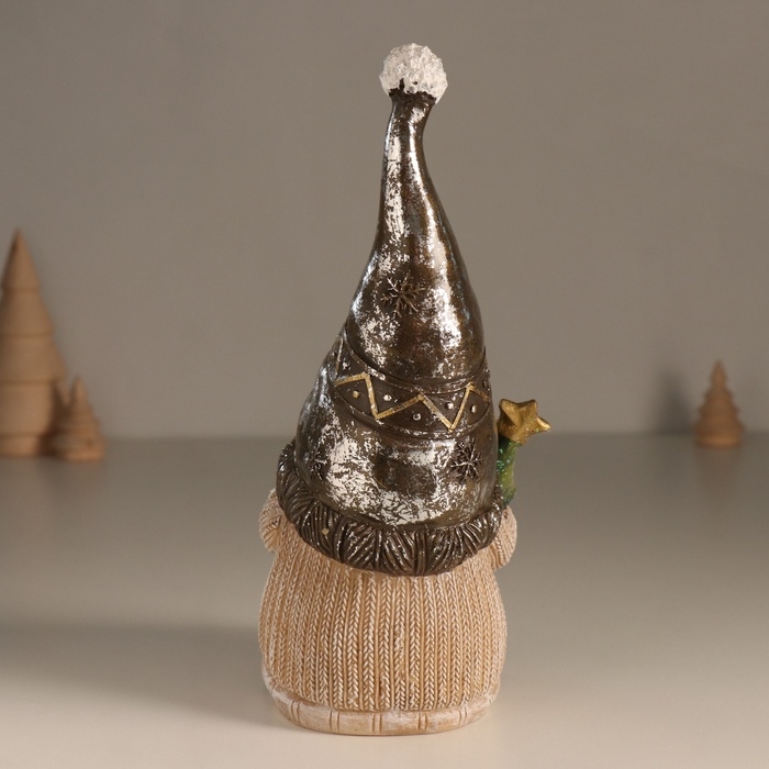 Сувенир полистоун свет "Дед Мороз в колпаке, с ёлкой" беж и шоколад 10,5х10,5х22 см