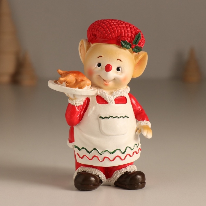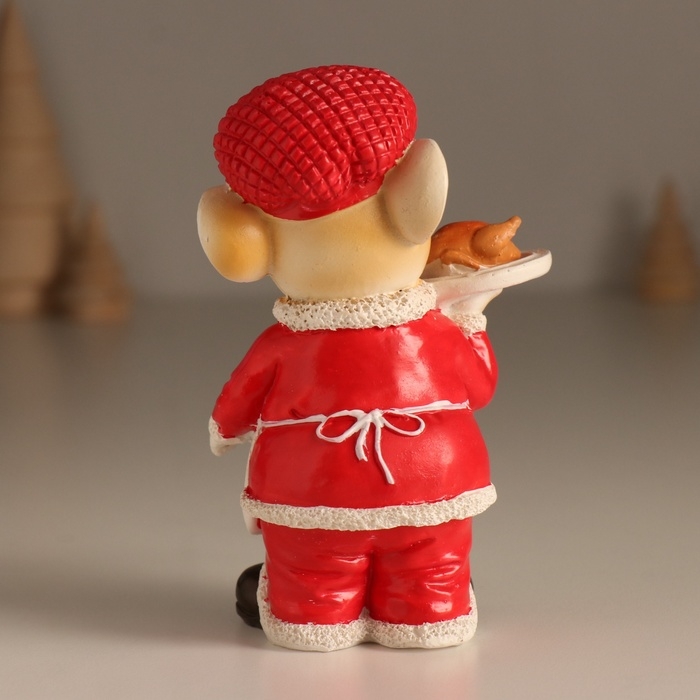 Сувенир полистоун "Мышонок в красном с белым фартуком, с праздничкой курицей" 7х5,5х11,5 см 103236